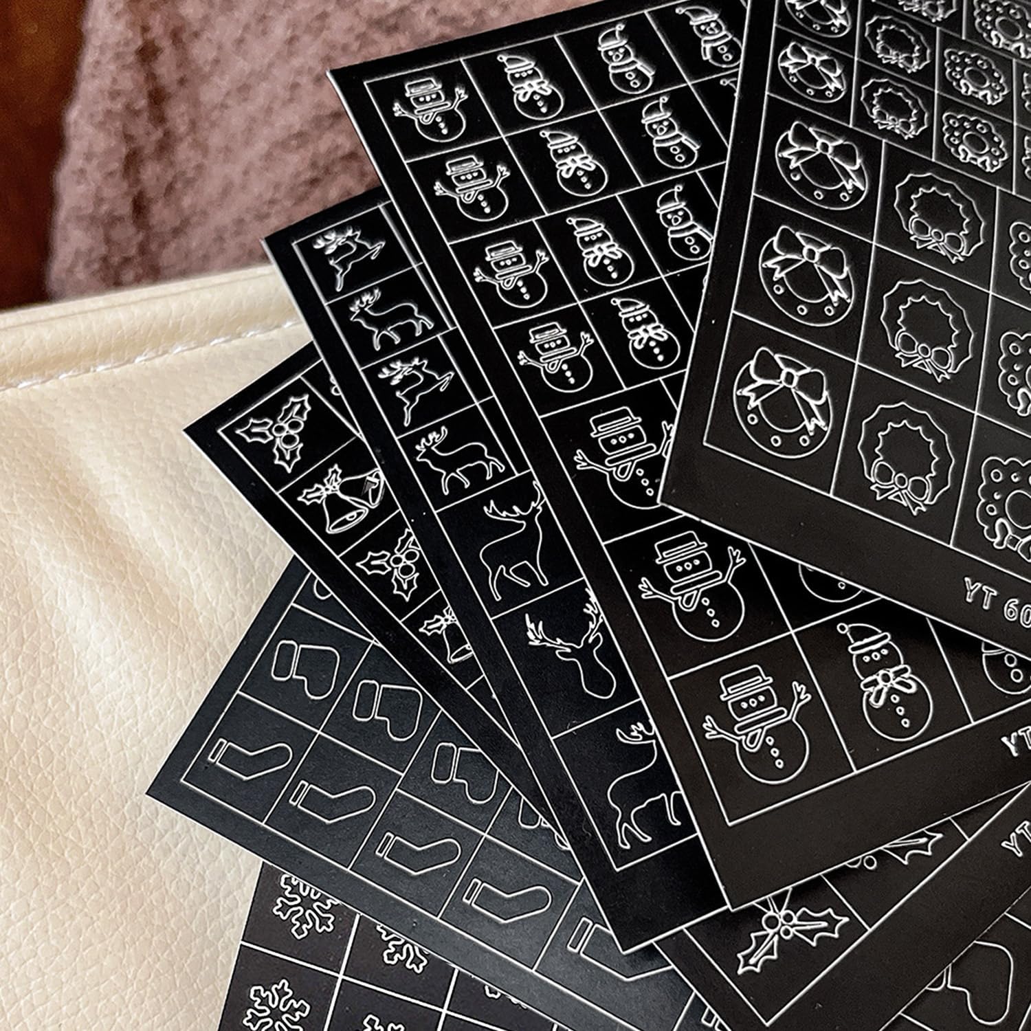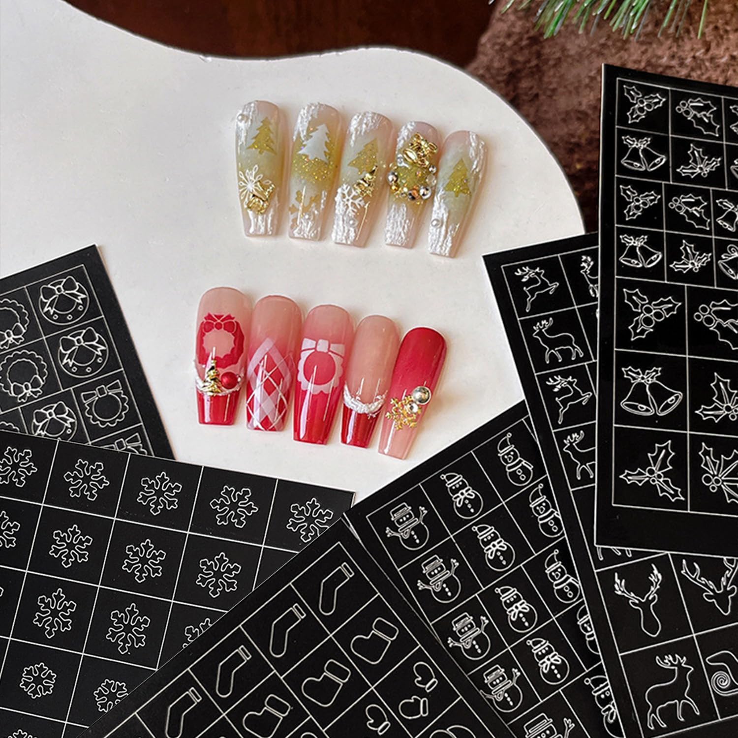- Special Nail Designs:6 sheets airbrush stencils 3D self-adhesive stickers, the nail decals contain snowman snowflower elk bell wreath socks designs, the best choice for christmas manicure,let you get a different manicure every day, it provides you with a variety of options to give full play to your rich imagination of nail DIY.