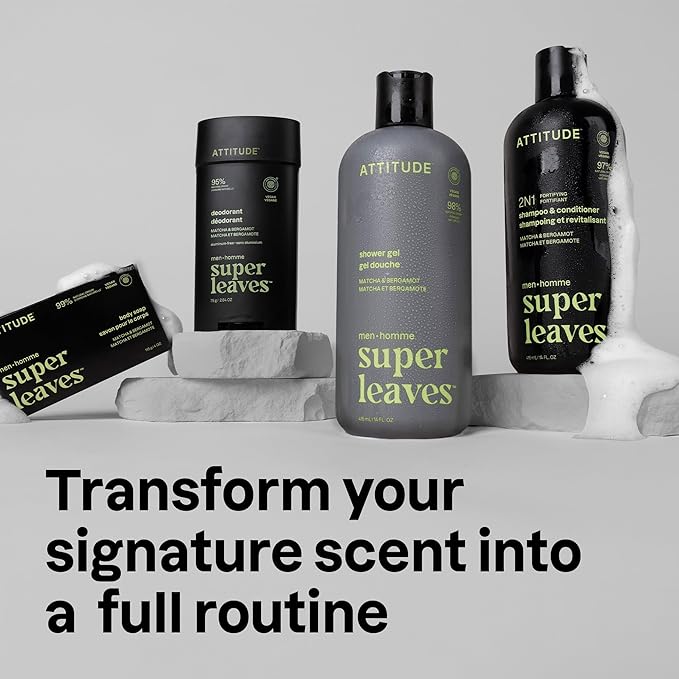 ATTITUDE Shower Gel Body Wash for Men, 98% Natural Origin Ingredients, Paraben & Phthalate Free, EWG Verified, Cleanses Without Drying, Matcha & Bergamot, 14 Fl Oz (Pack of 3)